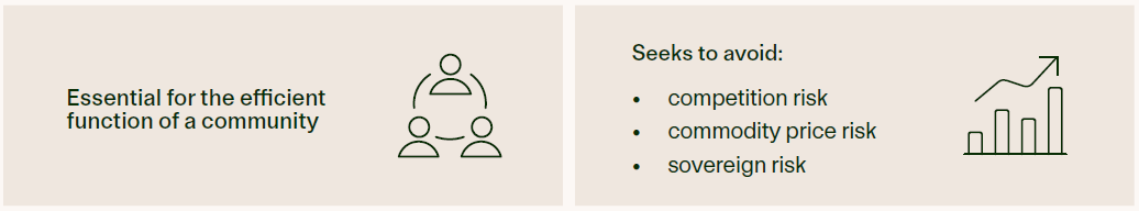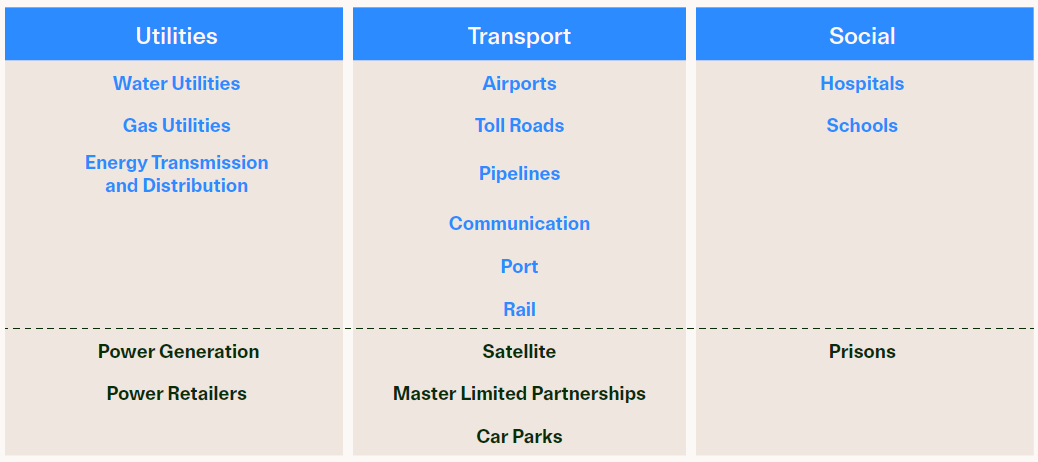 We seek to limit our investment universe to stocks that we believe provide investors with predictable, through- the-economic-cycle, inflation-linked returns. Excluding stocks whose earnings are sensitive to competition, movements in commodity prices, and sovereign risk. This includes assets such as transportation, energy and utilities, communications, and social infrastructure businesses.