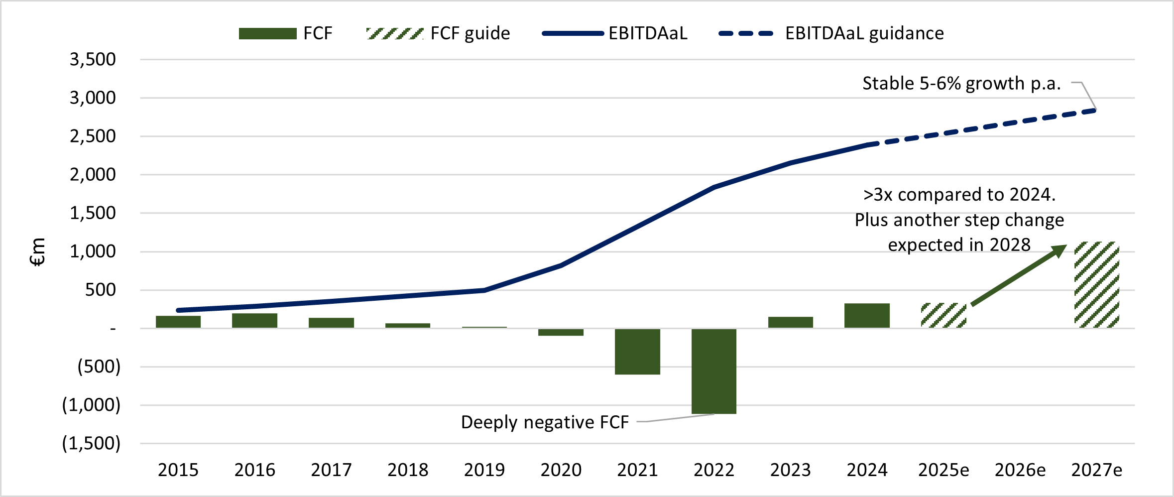 Management expect earnings to grow stably over the next three years due to the strength of its contracts. Free cash flow is expected to be >3x when compared to 2024, supporting shareholder remuneration.