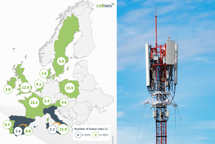 Cellnex has ~111k towers and ~178k tenants across 10 countries in Europe.